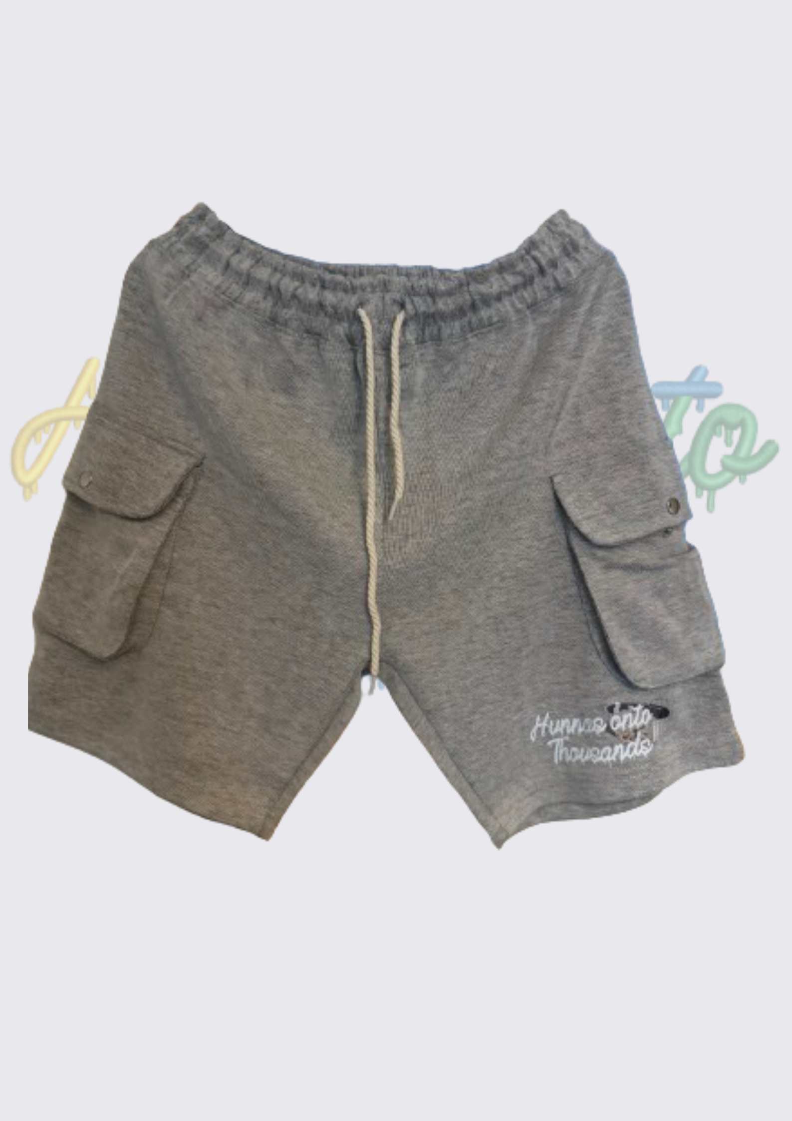 New Short Design with white double stranded draw string and button pockets