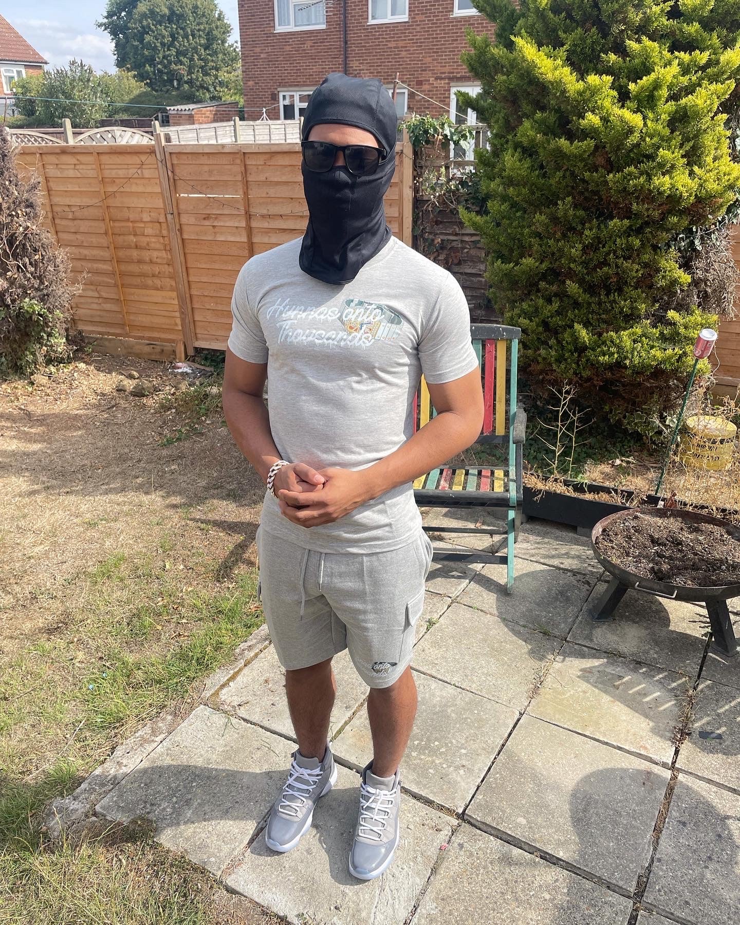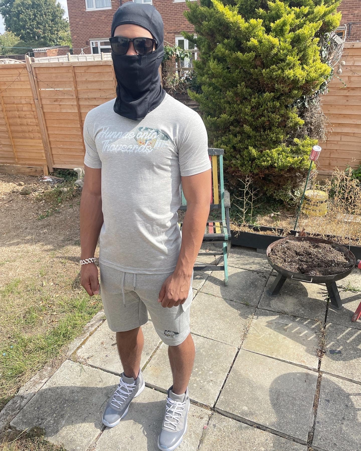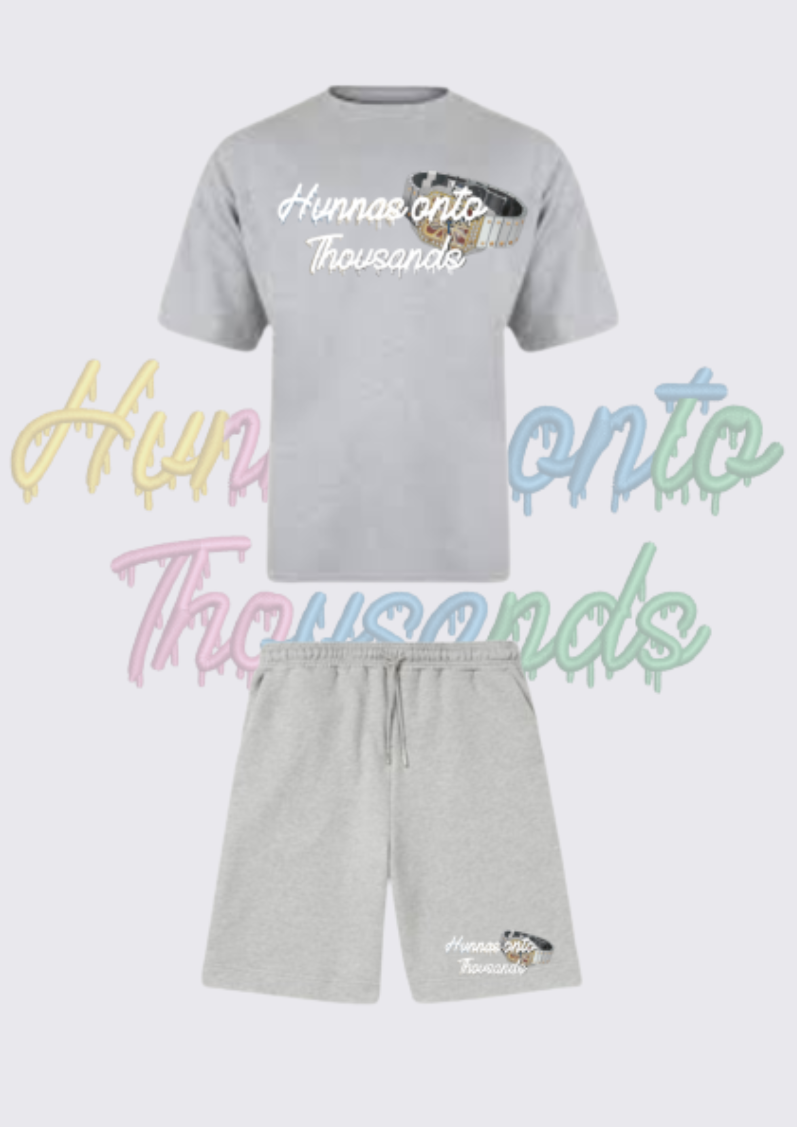 Hunnas Onto Thousands UK - "Skeleton Bustdown" T-Shirt + Cargo Shorts Set - Grey